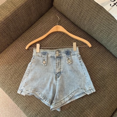 Real photos of the clear stock of summer hot girls high waist jeans irregular fashion hot pants