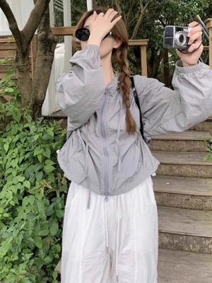 外貿原版防曬風衣面料美式甜酷風工裝衝鋒衣外套防曬衣