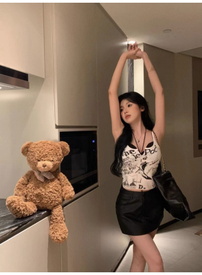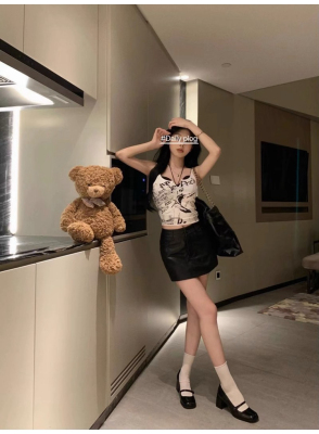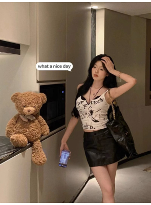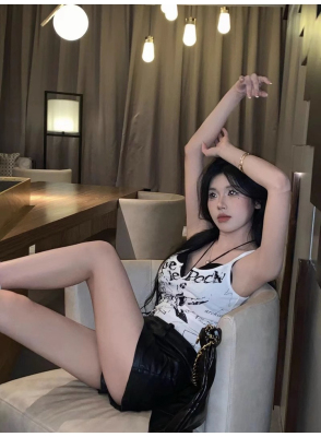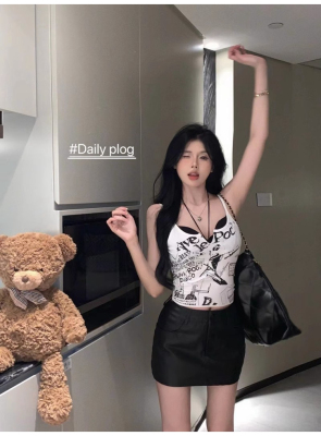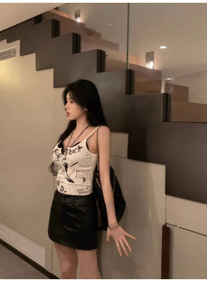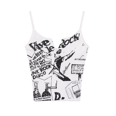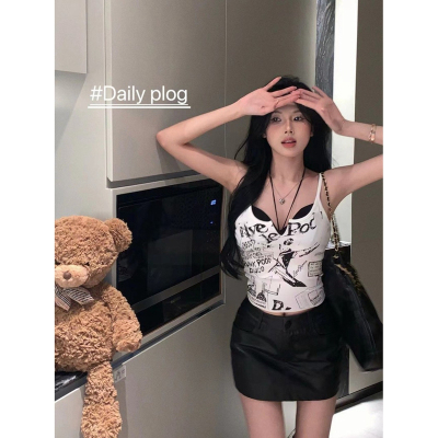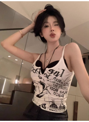 Korean foreign trade Korean summer new American white printed outside and small suspender vest top