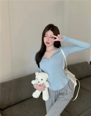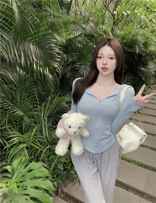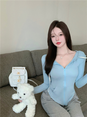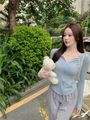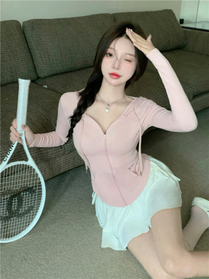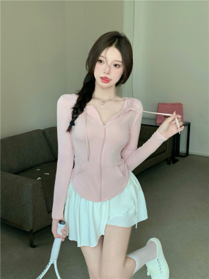 Real photos~ Thin zippered hooded sports sweatshirt for women, who likes the T-shirt and anti-skin coat