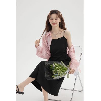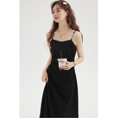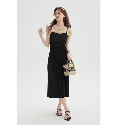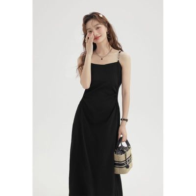 Black Strap Dress for Girls and Boys - Summer 2025 New Slimming Waist High-End Elegant Herve Benard Style Little Black Dress