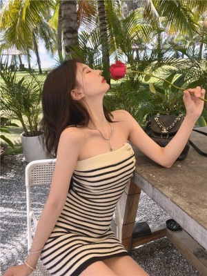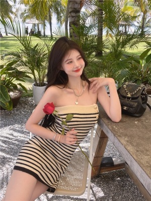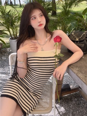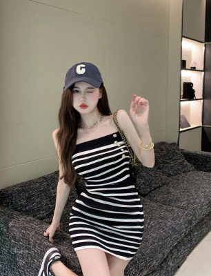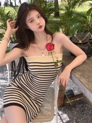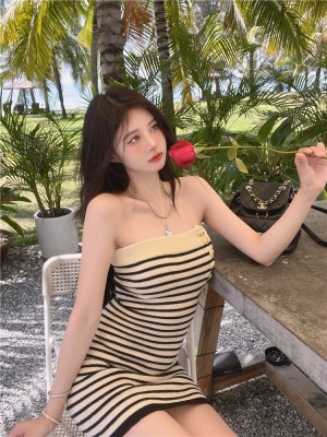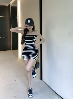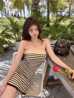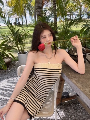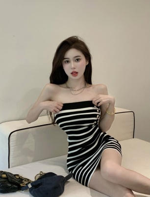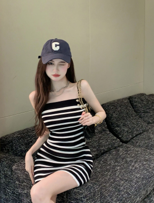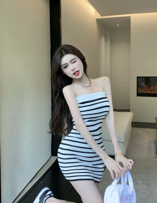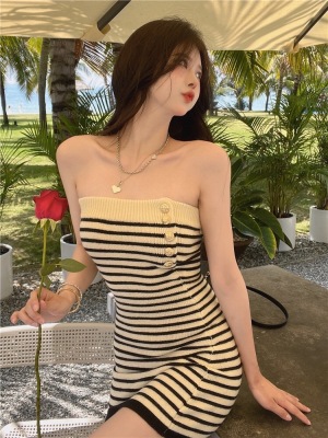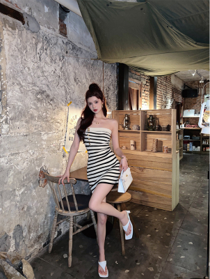 Sweet and Spicy Pure Desire Style Sexy Striped Bralette Dress for Petite Body with Tight Hip Short Skirt Summer Version