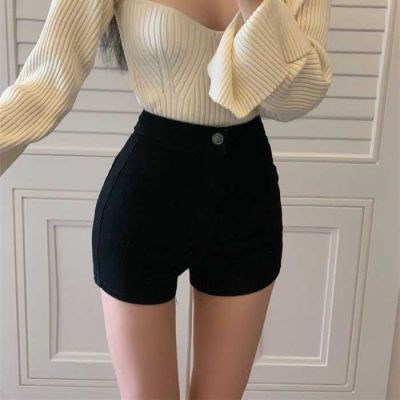 Stretch denim shorts for women in summer 2025 new sexy high waist slim tight black hip hot pants