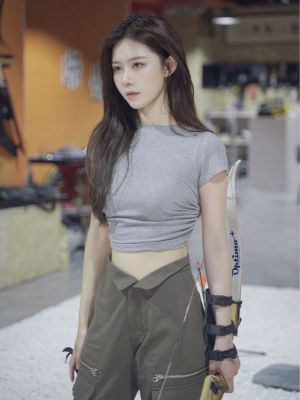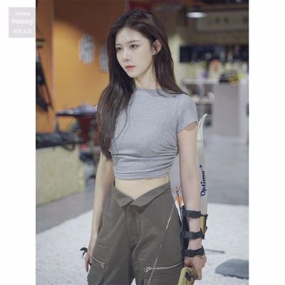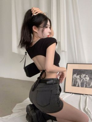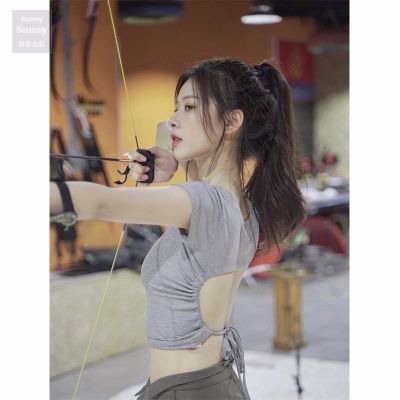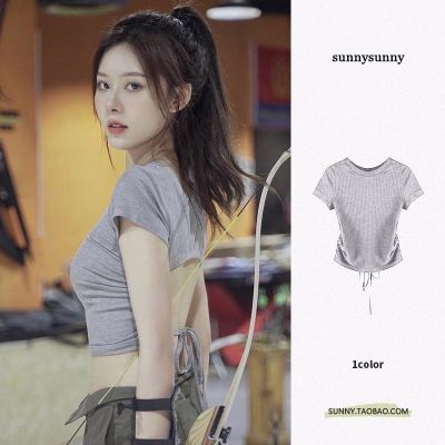 92 people cotton 8 spandex 260g summer slim fit pure backless lace-up short-sleeved T-shirt