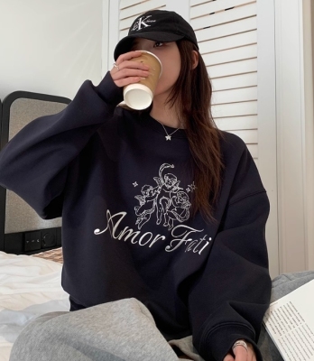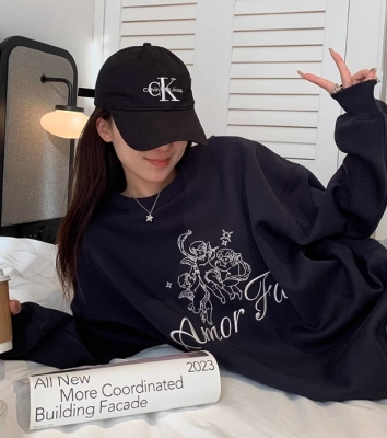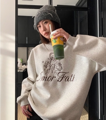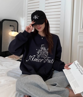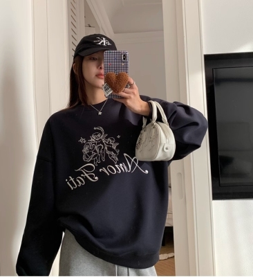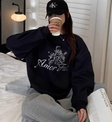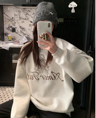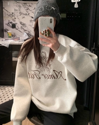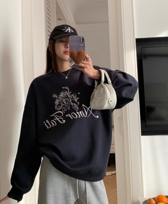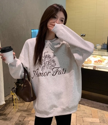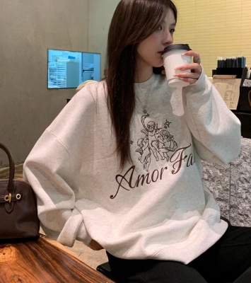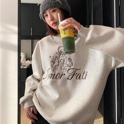 Korean Dongdaemen Spring and Autumn Age-reducing Letter Print Round Neck Loose and Versatile Long Sleeve Sweatshirt for Women
