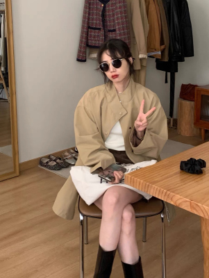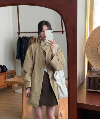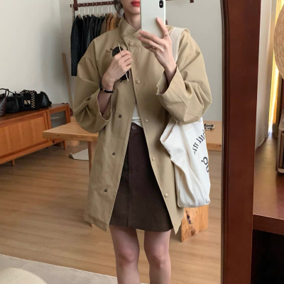 Spring 2025 Lazy Style Khaki Medium-Length Coat Outerwear for Women - New Arrival This Year's Trendy Coat
