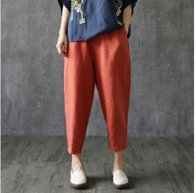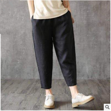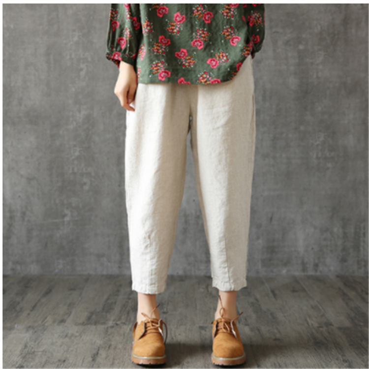 Cotton and Linen Women's 9/10 Loose Hemming Summer Han Style Casual Turnip Pants for Summer