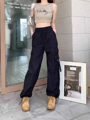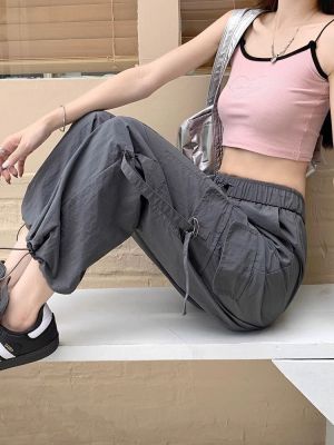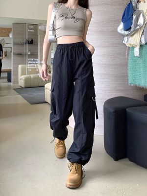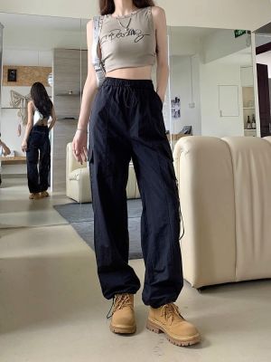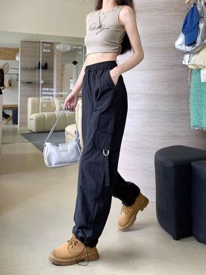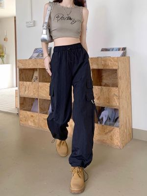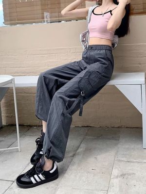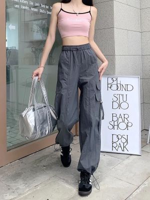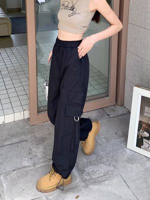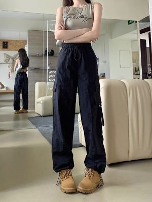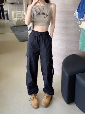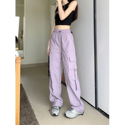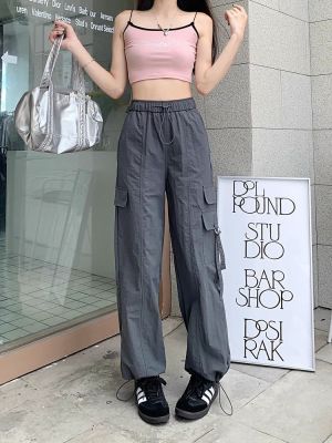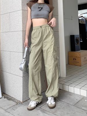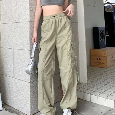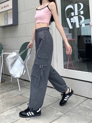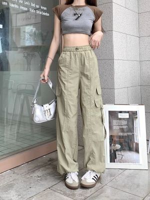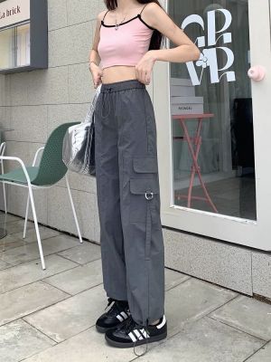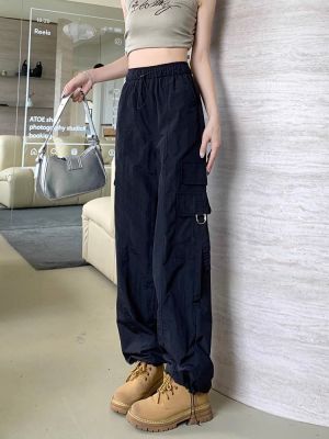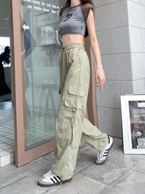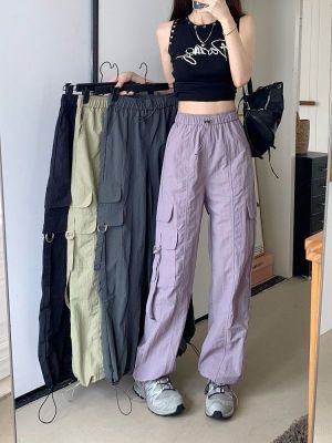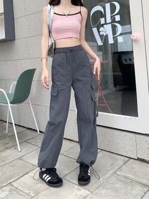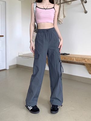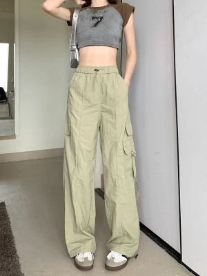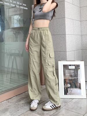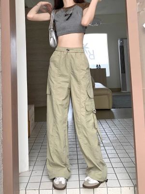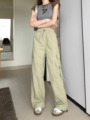Working pants 2025 new summer high waist loose drawstring wide-leg casual pants men's straight-leg trendy trousers