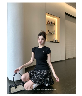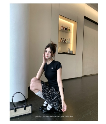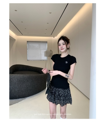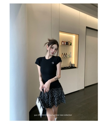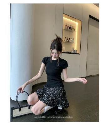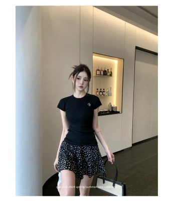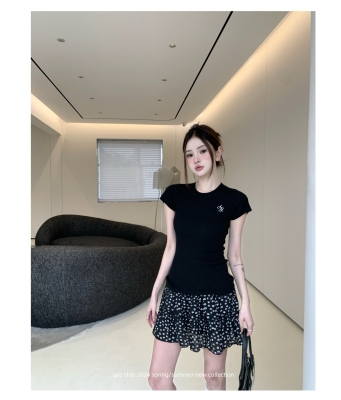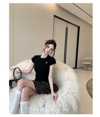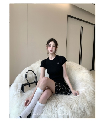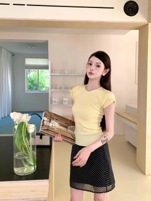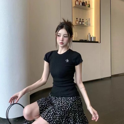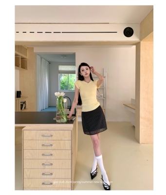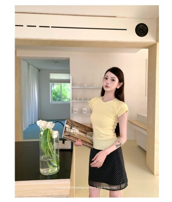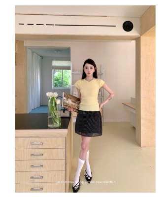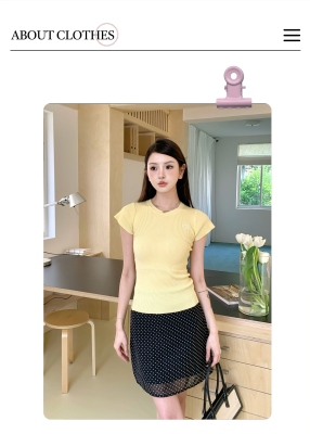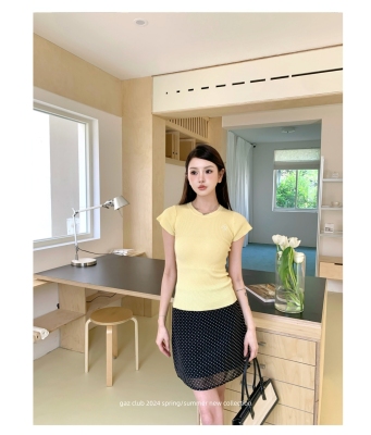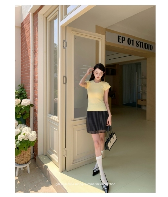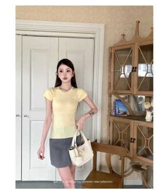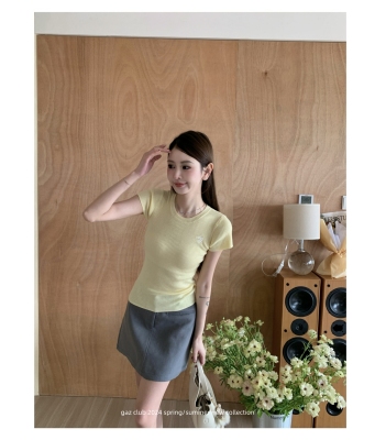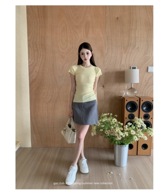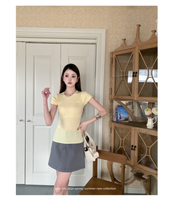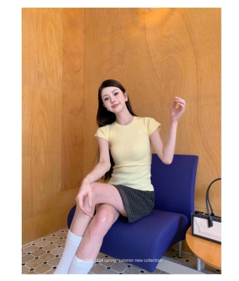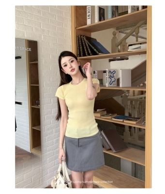 新款黃色短袖T恤女打底針織衫短款修身顯瘦上衣夏季