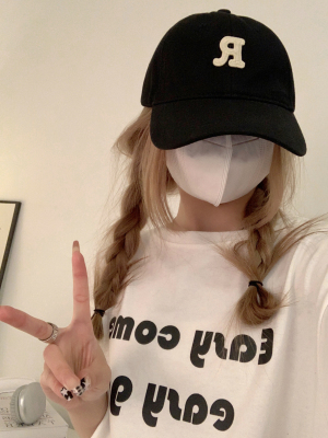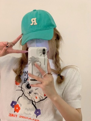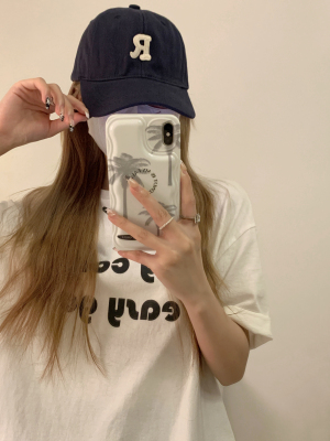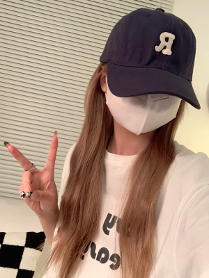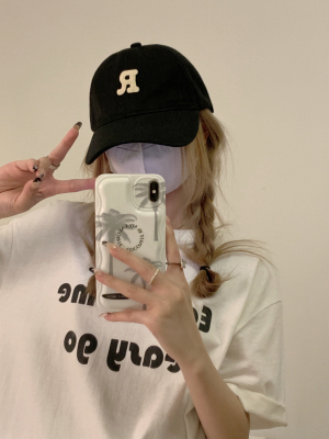 Real shot Korean version of high-end R letter embroidered baseball cap versatile soft top baseball cap for men and women
