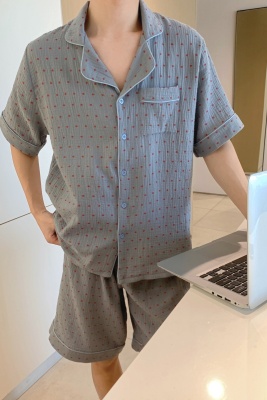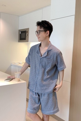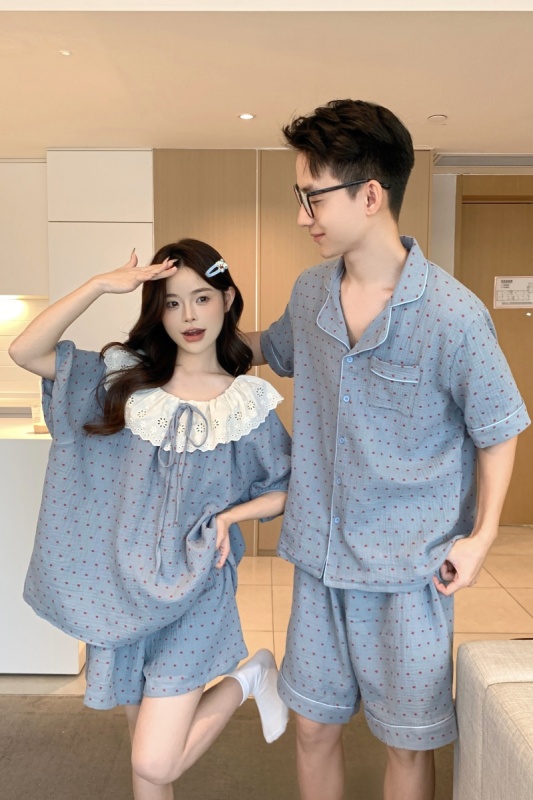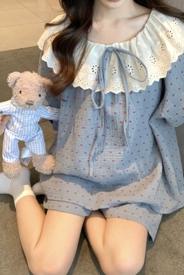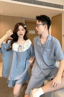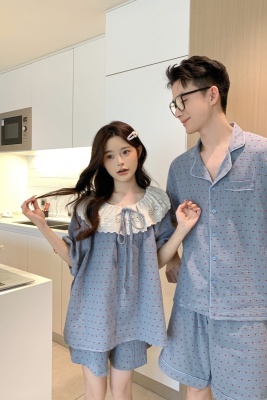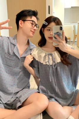 Real shot of Korean couple sweet, fresh, loose, breathable, soft cotton double yarn casual outdoor wear home clothing suit