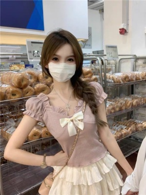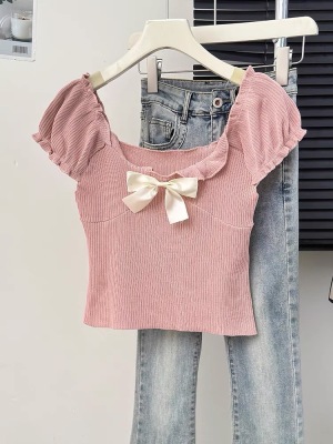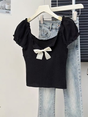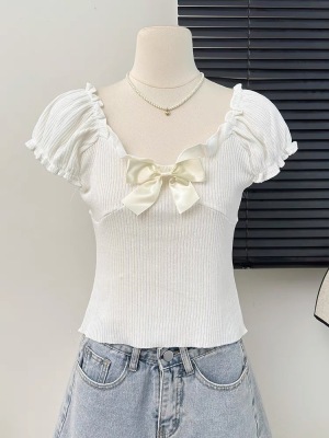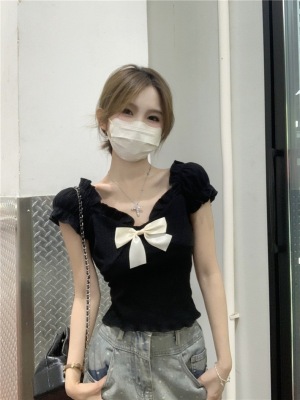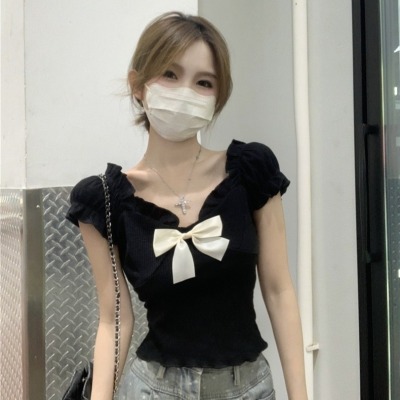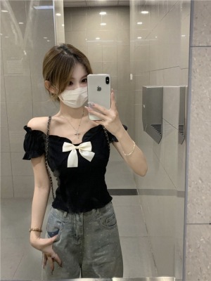 Bow-shaped shoulder short-sleeved T-shirt for women in summer new design niche slim short one-shoulder top
