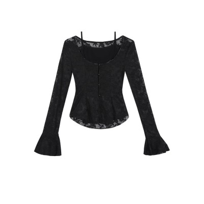 New fashion two-piece slim lace shirt for women in spring and summer high-end pure hot girl sexy tights