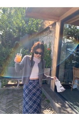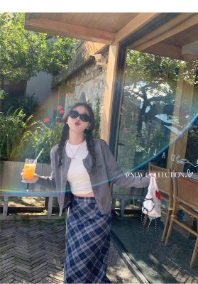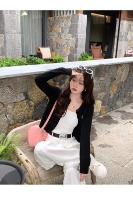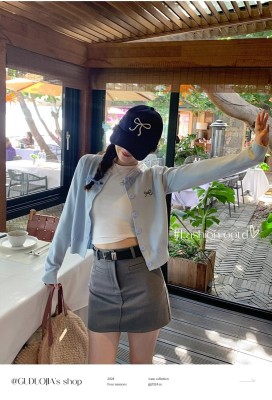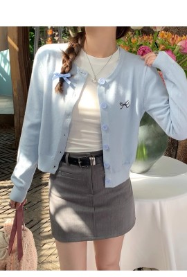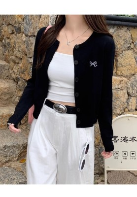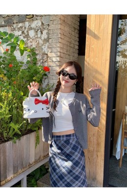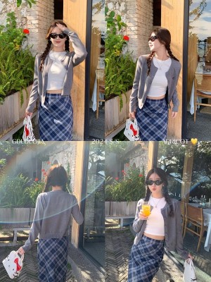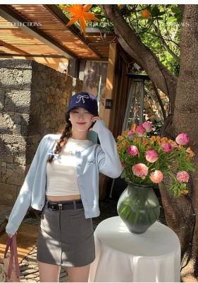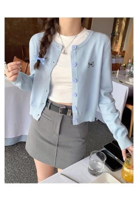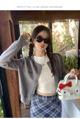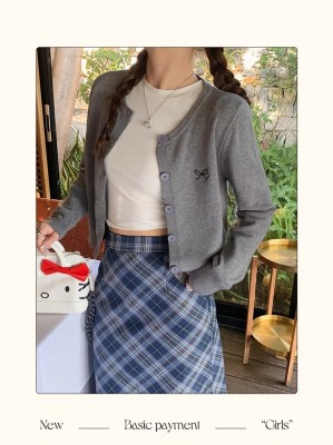 Gray cardigan women's 2025 new knitted jacket spring short top Korean style outfit