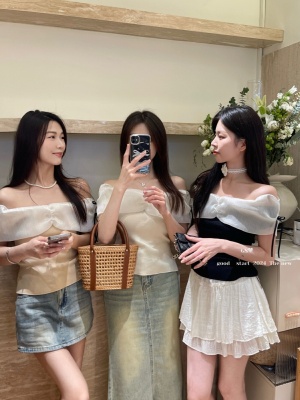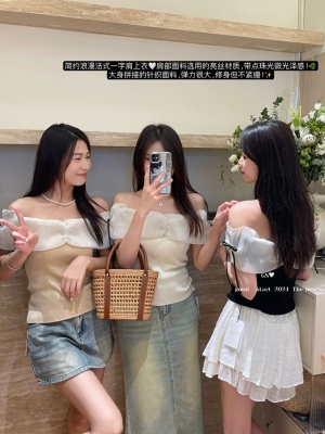 2025 summer new pure and high-end design slim one-shoulder temperament hot girl short shirt top