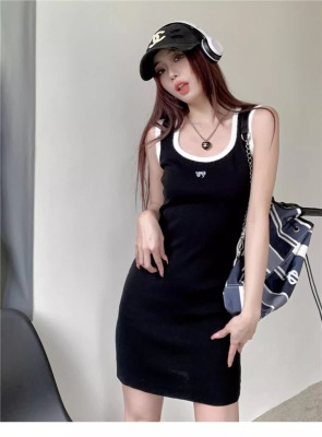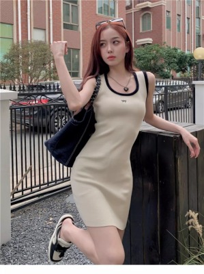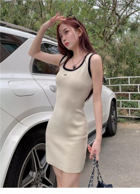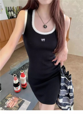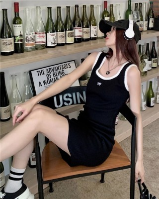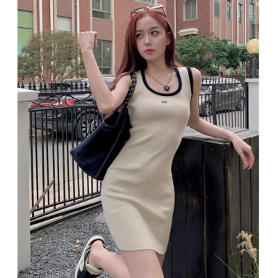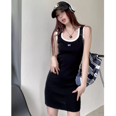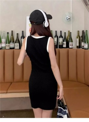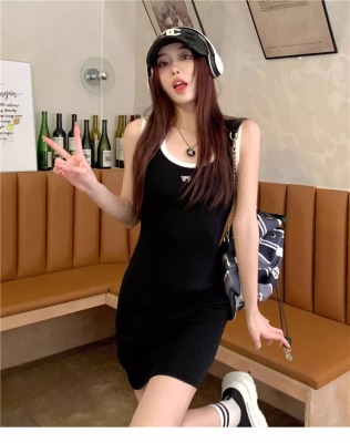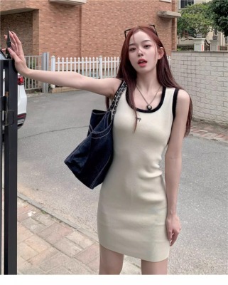 天貓質量無袖U領針織修身吊帶連衣裙夏季新款收腰顯瘦包臀裙