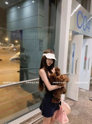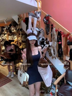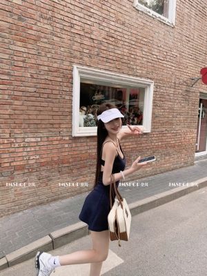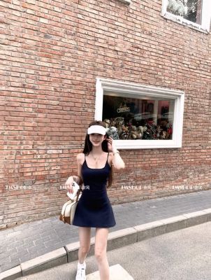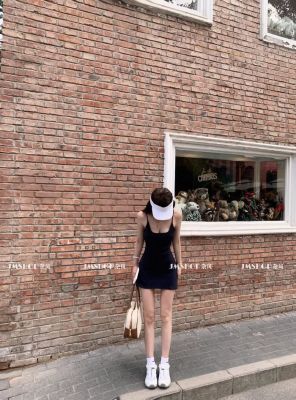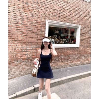 JMSHOP 小蠻腰 美式運動感露背吊帶連衣裙女夏帶胸墊收腰短款裙子