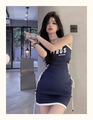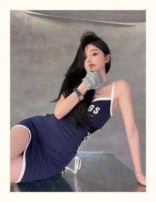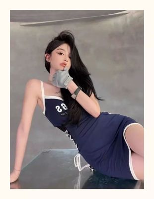 藍色吊帶連衣裙女夏日多巴胺穿搭美式甜辣妹純欲風小個子包臀裙子