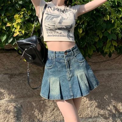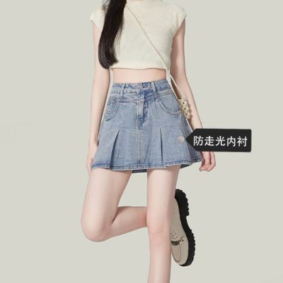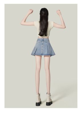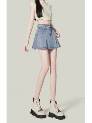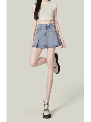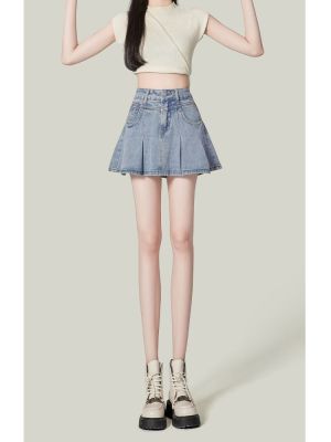 Korean Leisure Style High-Waisted Pleated Denim Skirt for Women - Spring and Summer New Arrival Slimming and Tall-Showing A-Line Denim Skirt Trendy