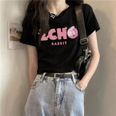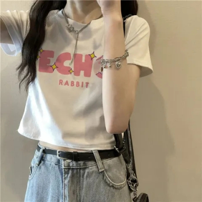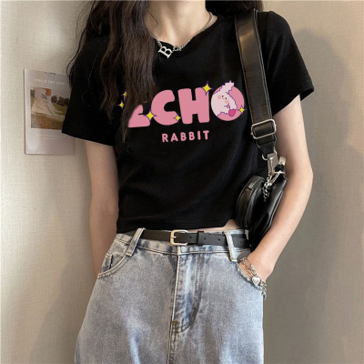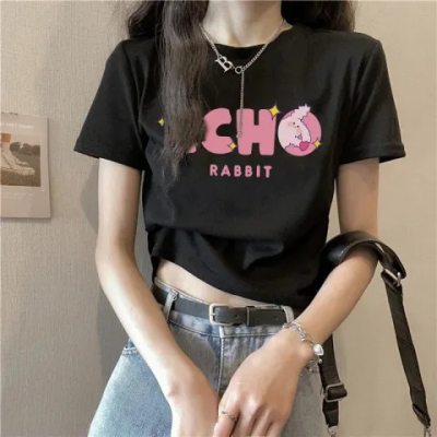 原版韓國外貿韓版新款短袖t恤女夏季寬鬆短款內搭高腰上衣