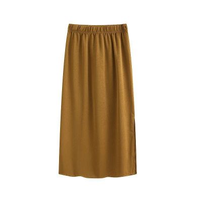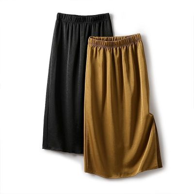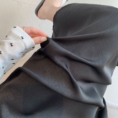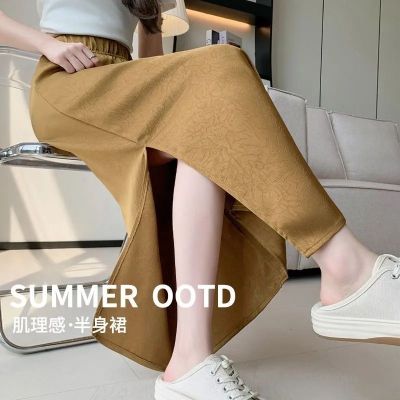 中長裙醋酸鎏金開叉半身裙女夏季小眾遮肉肌理感高腰垂感裙子