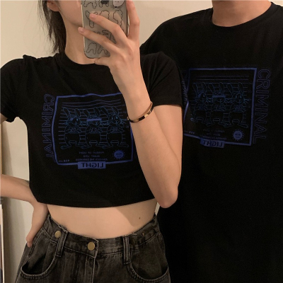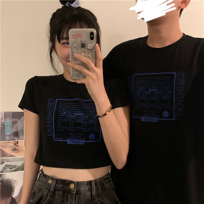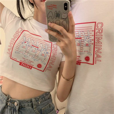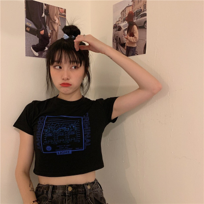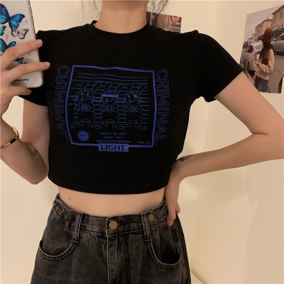 Korean-style short T-shirt for women, new summer design with short sleeves, high-waisted, crop top that highlights the waist—perfect for students.