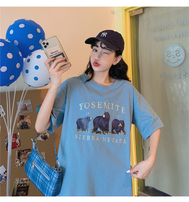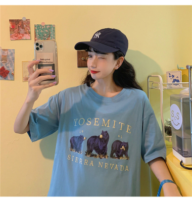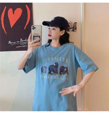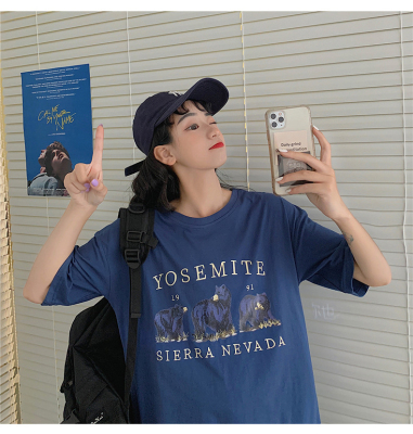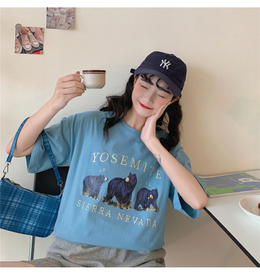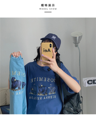 韓國外貿韓版新款夏季短袖T恤女韓版寬鬆慵懶原宿上衣chic港