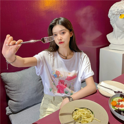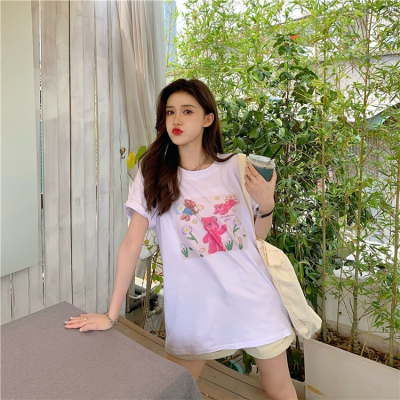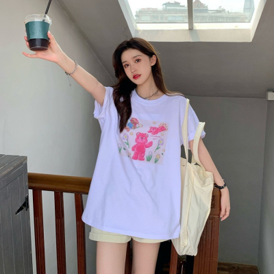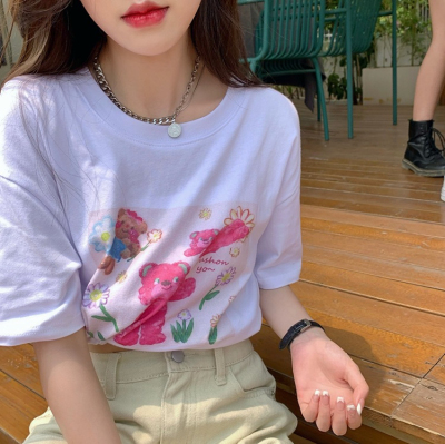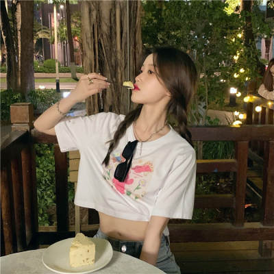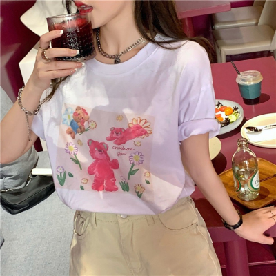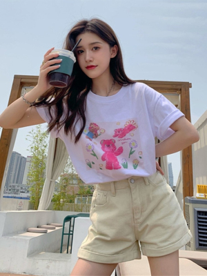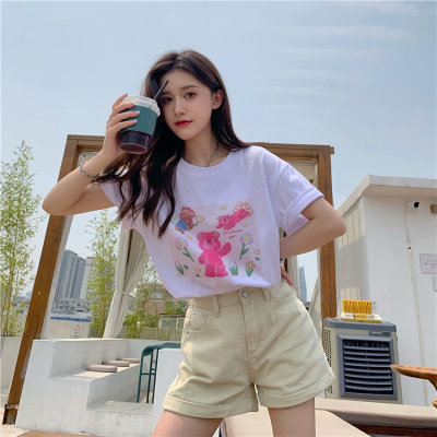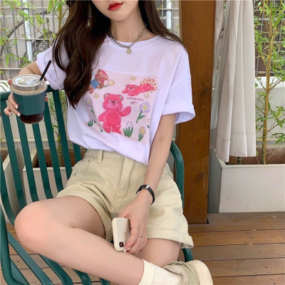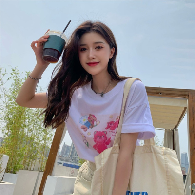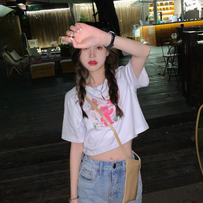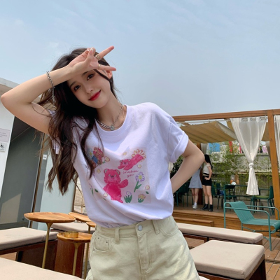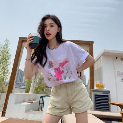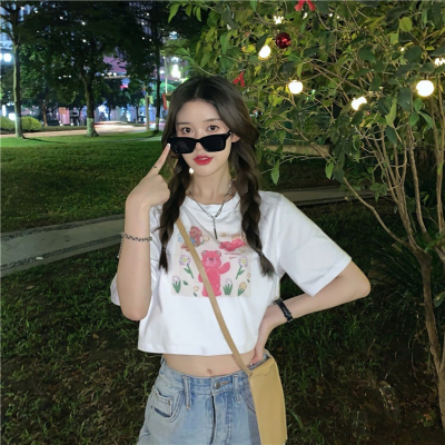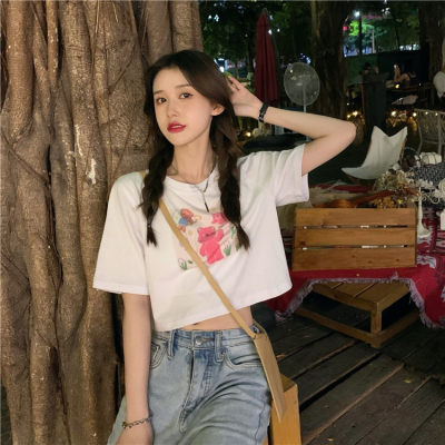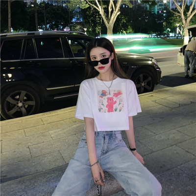 韓國外貿甜美小熊短袖T恤女夏季ins潮鹽系減齡小個子短款露臍上衣