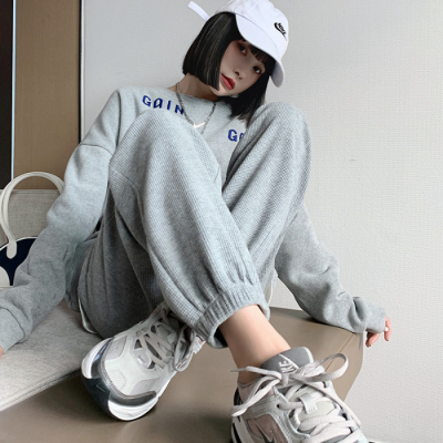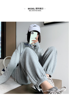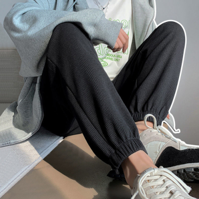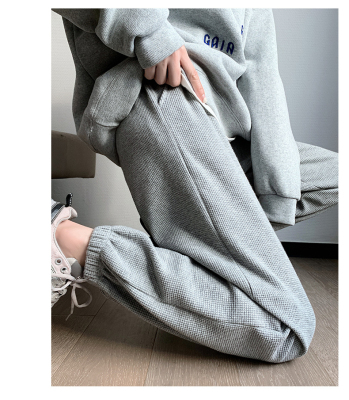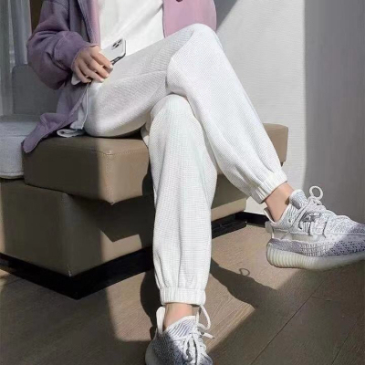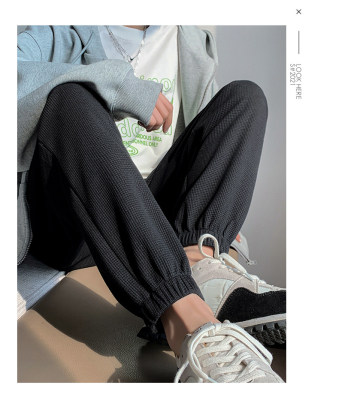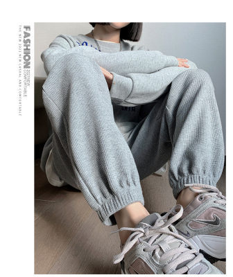 Original Women's Spring and Summer Thin Gray Honeycomb Pattern Sports Pants Loose Leggings with Ankle Ties for Petite Figures
