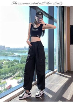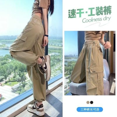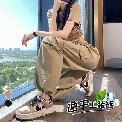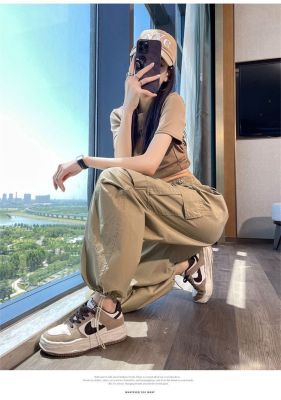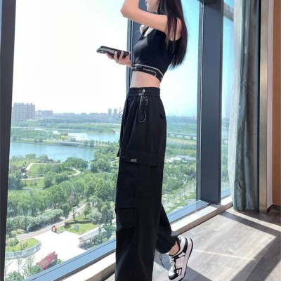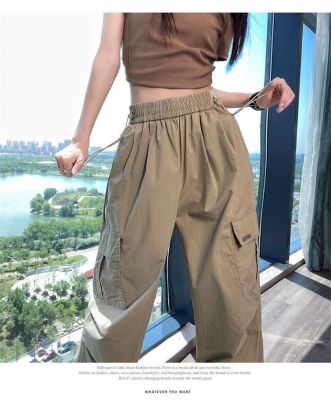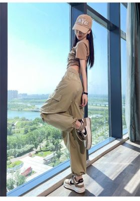 Women's American Work Pants Relaxed High-Waisted Petite Two-Way Gated Pants Loose and Slimming Sports Wide Leg Pants