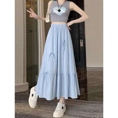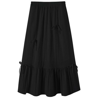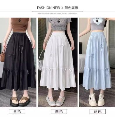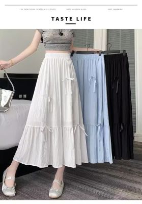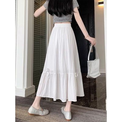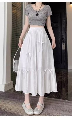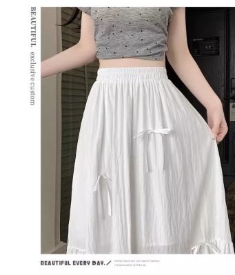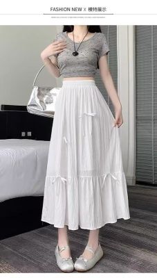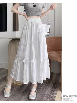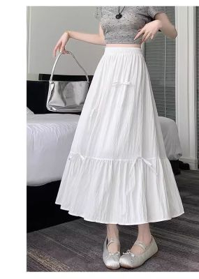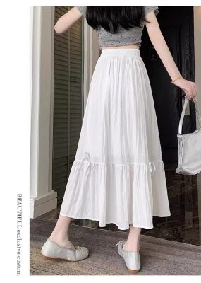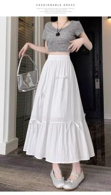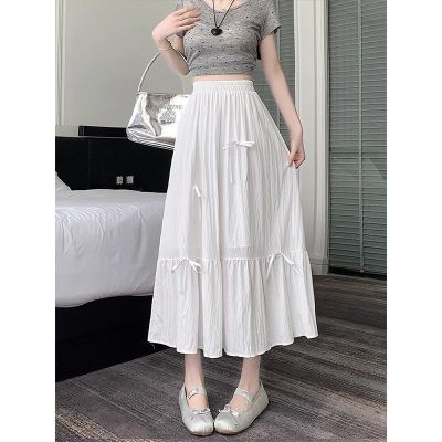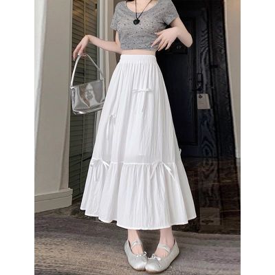 白色半身裙女夏季新款法式蝴蝶結蓬蓬半裙a字裙高腰垂感傘裙