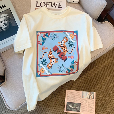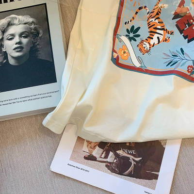 韓國外貿韓版新款夏季短袖T恤女韓版寬鬆慵懶原宿上衣chic港