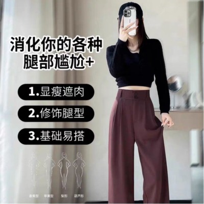 Women's Spring and Summer 2025 New Narrow Leg High-Waist Slimming Advanced Sensibility Trousers with Black Straight Leg Suit Trousers