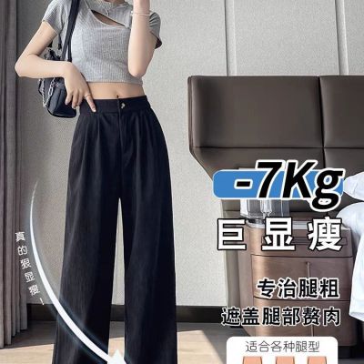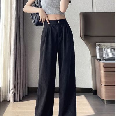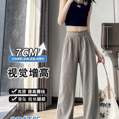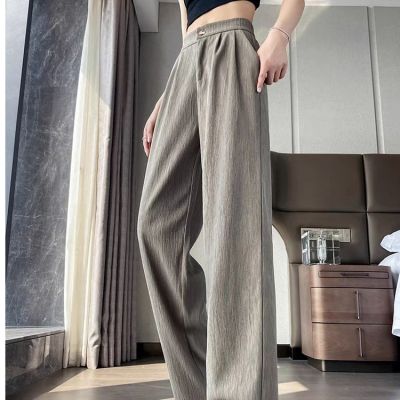 Grayish-green women's summer thin high-waisted draping casual straight-leg floor-length textured pleated wide-leg pants