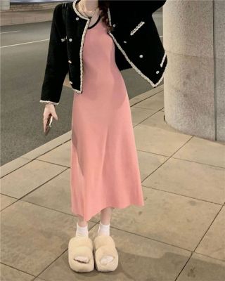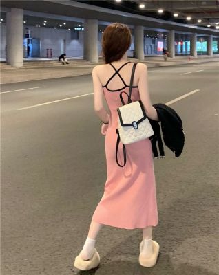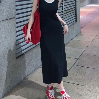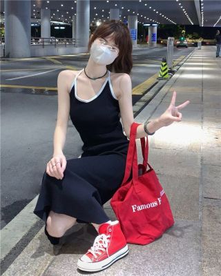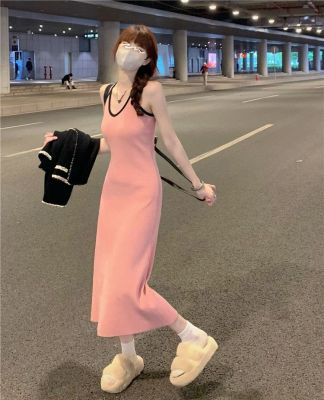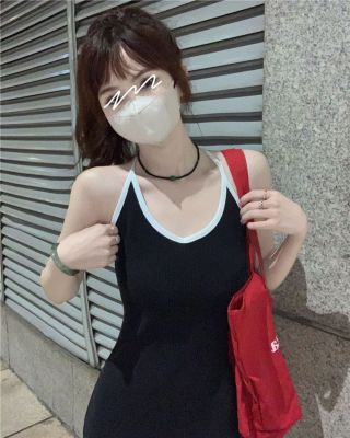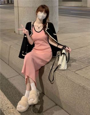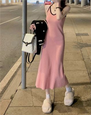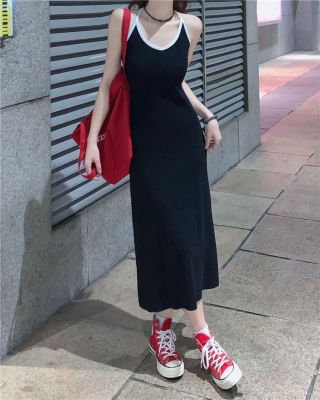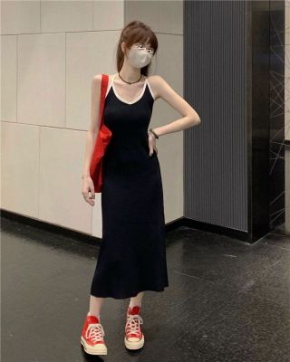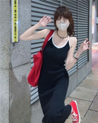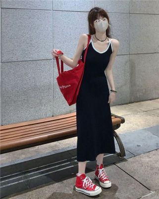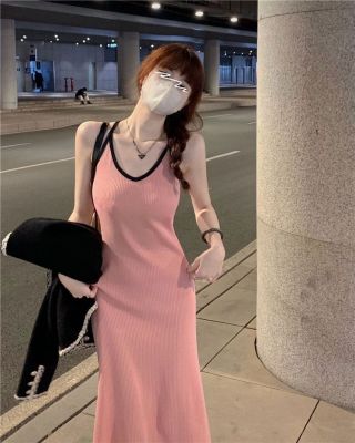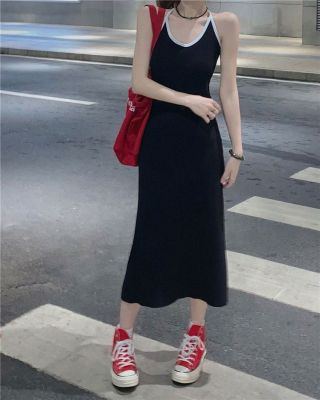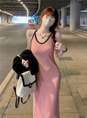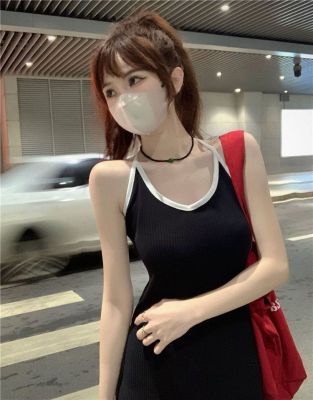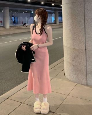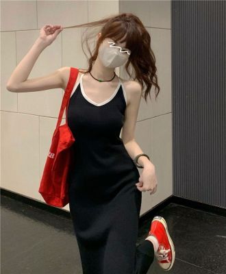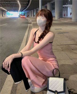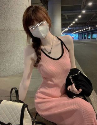 American sweet and spicy striped knitted suspender dress for summer wear, slim and pure hot girl skirt