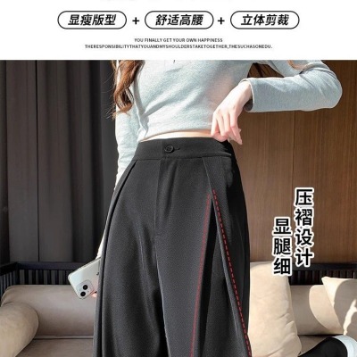 High-waisted suit pants for women in summer 2025 new draped straight-leg casual small black spring and autumn narrow wide-leg pants