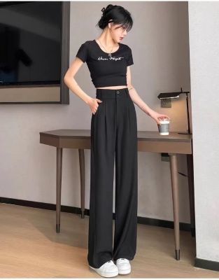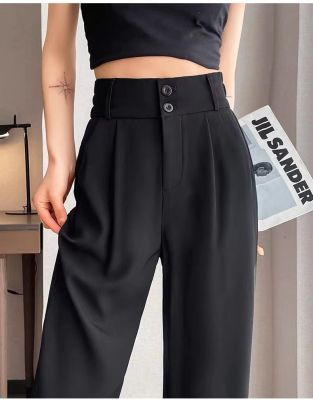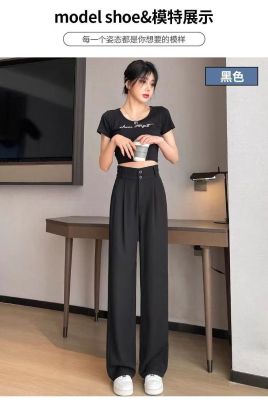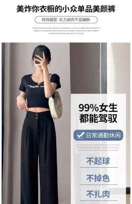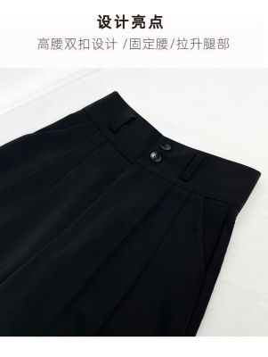 300 catties large size fat mm black wide-leg pants for women in summer high waist slim pear-shaped body draped suit straight pants