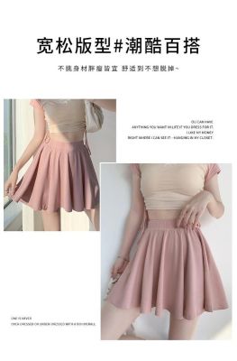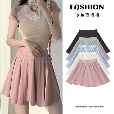 Pink ice silk pleated skirt women's skirt summer new style pants skirt high waist thin small A-line short skirt