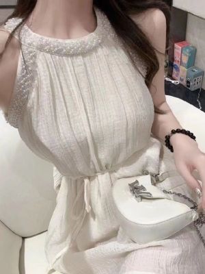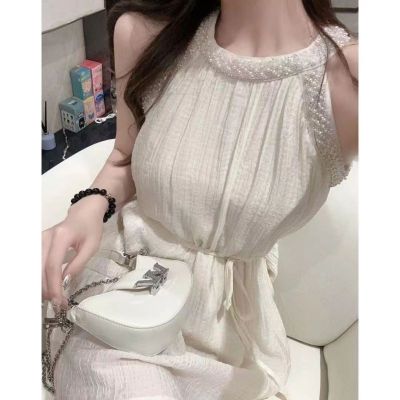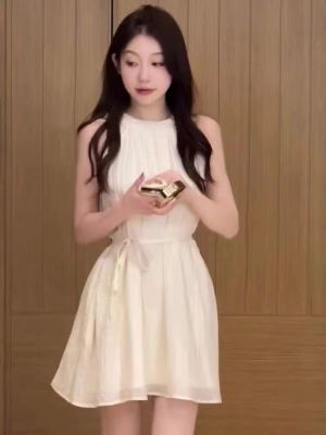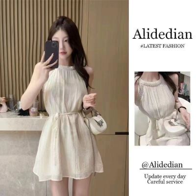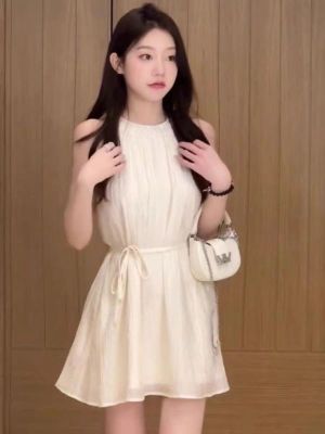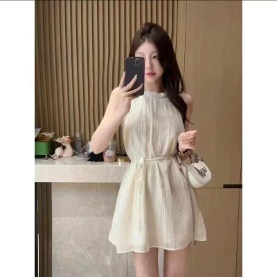 Designers' Neck Gown, Stylish Wrap Dress, Short Sleeveless Shoulder Strap Dress, Sweet French Vacation Style