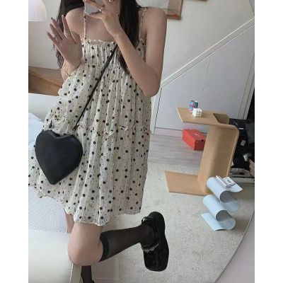 Dress with Straps 2025 New Summer Small Floral Korean Style Loose Ins Super Fairy Student Slimming Mini Dress for Petite Women