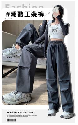 High-end work pants for women in spring and summer 2025 new trendy and cool high waist slimming fashionable and versatile two-wear sports wide-leg pants