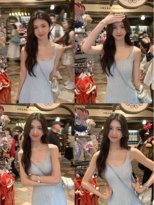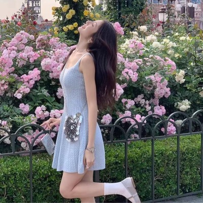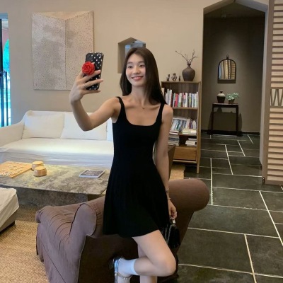 MULVAN U-neck slim suspender dress for women's twisted knitted short skirt summer new A-line waist-hugging skirt