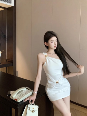 Sexy Lolita Style Off-Shoulder One-Shoulder Spaghetti Strap Dress Women's Summer New Slim-Fit Elegant Sheath Short Skirt