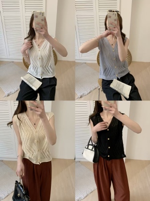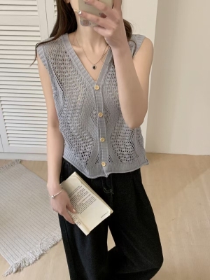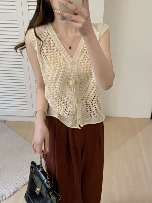 Women's 2025 Summer New High-End Knit Tank Top with Lace Detail, Stylish, Unique, Versatile Cardigan-style Top