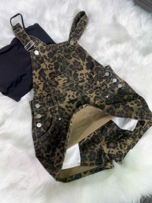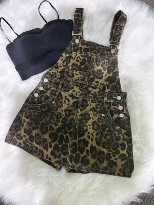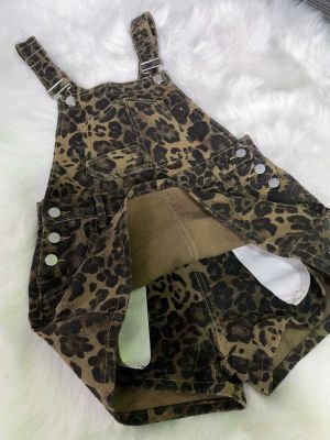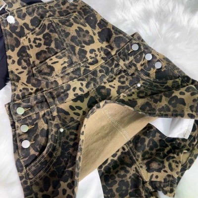 Retro hot girl leopard print denim overalls for women in summer new design sense high-quality cool and age-reducing dress pants