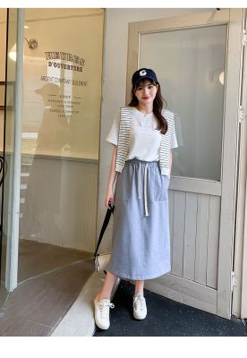 -Official Photos New spring style versatile rear slit loose wide-leg casual skirt for women