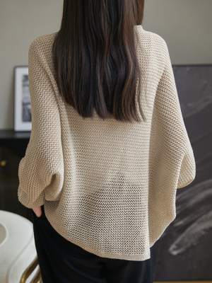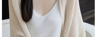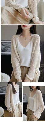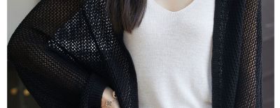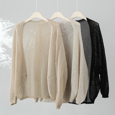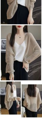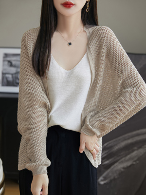 時尚氣質天絲亞麻鏤空披肩外套夏季女寬鬆休閒蝙蝠袖網眼針織開衫