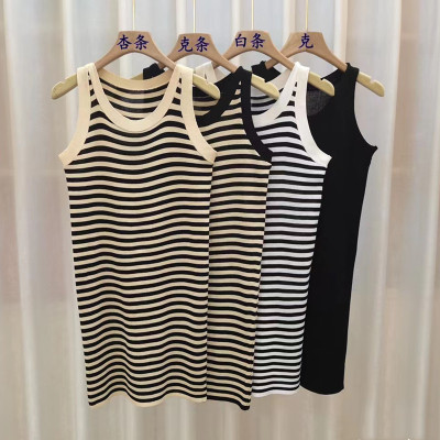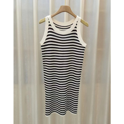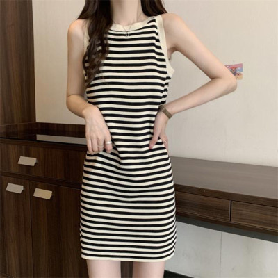 Elegant, Slimming Knitted Dress for Women – Summer Collection, Chic Striped Halter Neck Sheath Skirt