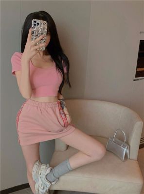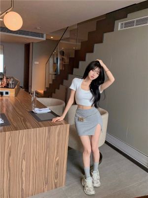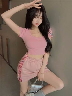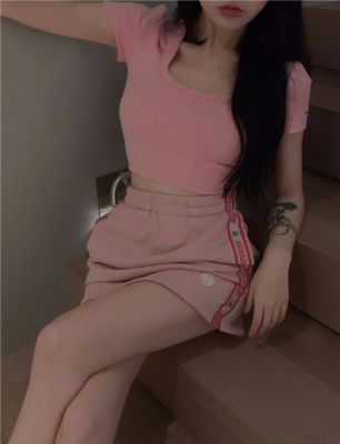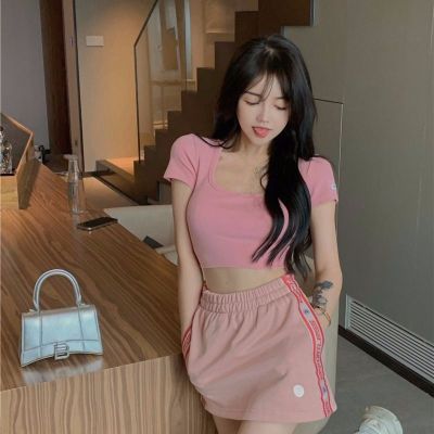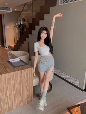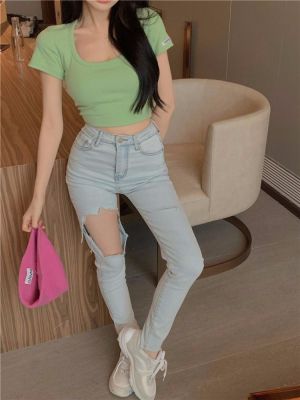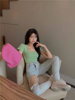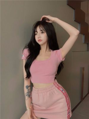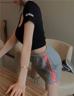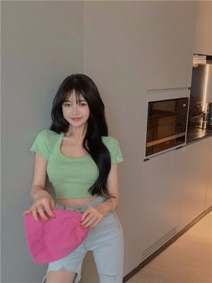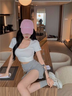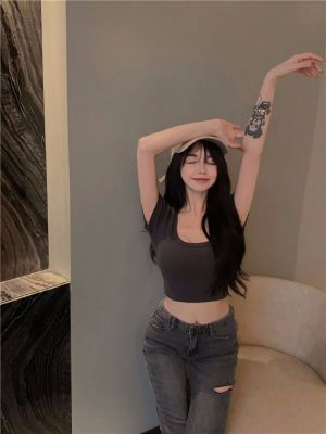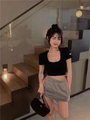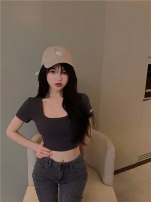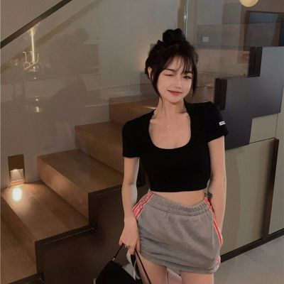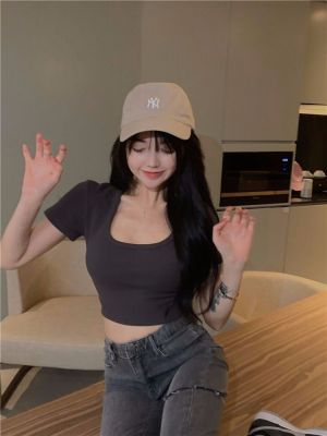 Modal cotton 260g large neckline tight short navel top design hot girl Hong Kong style short-sleeved T-shirt for women