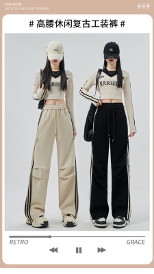 Photographed 3D edge Spring American women's new straight-leg casual bootcut pants